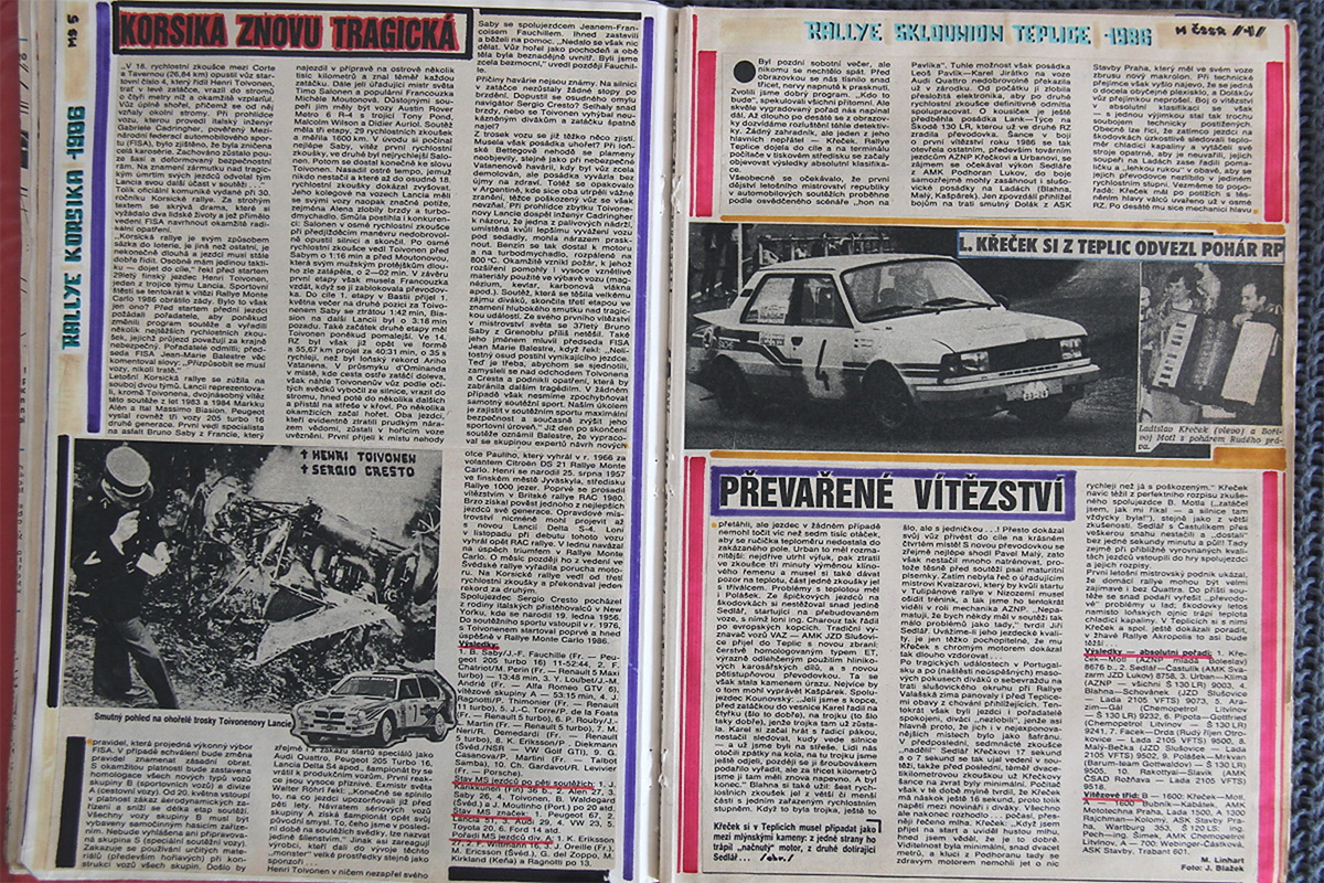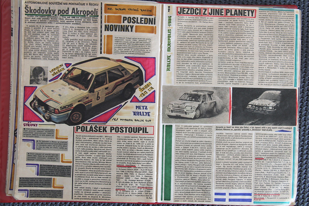 Od druhého roku (tady mazáctví) jsem měl i více času na shromažďování různých obrázků a článků o rallye. Tím vznikly sešity s informacemi i o soutěžích, které se jezdili mimo naší republiku, Mistrovství světa, Mistrovství Evropy, Mitropa Cup, Pohár míru a přátelství a další. Nebylo mnoho možností, jak toto v době socialismu pořídit. Hlavními zdroji tedy byly časopisy Motor, Svět motorů, atd.